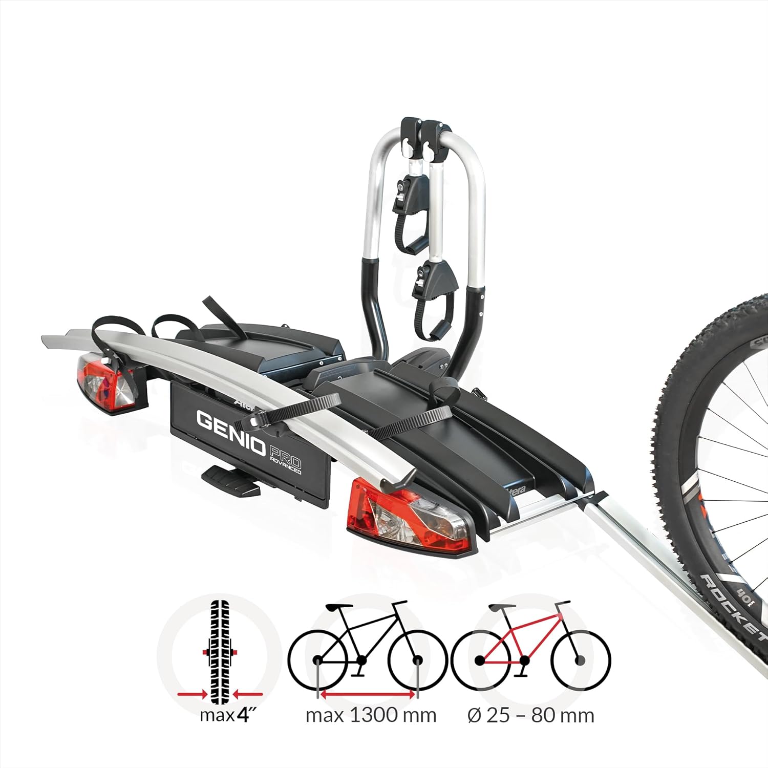 Atera 022780 Genio Pro Advanced Portabici pieghevole con luci posteriori per 2 biciclette o bici elettriche