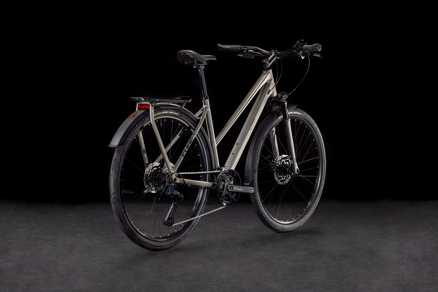 Il telaio trapezoidale della Kathmandu è un simbolo di eleganza classica! Il portapacchi integrato IC 3.0 si fonde perfettamente ed elegantemente con i nostri parafanghi ACID. Sono inoltre presenti i supporti per un freno a disco flat mount e un cavalletto sulla ruota posteriore. Il telaio deve il suo aspetto pulito e ordinato alle connessioni lisce dei tubi saldati. Questo per quanto riguarda l’aspetto. In termini di funzionalità, Cube ha dotato il triangolo posteriore di un perno passante e ha optato per un tubo di sterzo imbutito per ottimizzare la stabilità e la precisione di guida (anche a pieno carico). Infine, la trasmissione passa agevolmente da una marcia all’altra grazie ai cavi che passano attraverso il tubo obliquo e non necessita di alcuna manutenzione. C’è tutto quello che serve, basta mettere in valigia lo spazzolino da denti!
