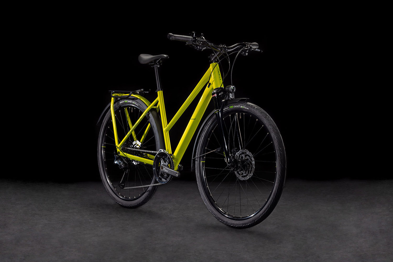 Il telaio trapezoidale della Kathmandu è un simbolo di eleganza classica! Il portapacchi integrato IC 3.0 si fonde perfettamente ed elegantemente con i nostri parafanghi ACID. Sono inoltre presenti i supporti per un freno a disco flat mount e un cavalletto sulla ruota posteriore. Il telaio deve il suo aspetto pulito e ordinato alle connessioni lisce dei tubi saldati. Questo per quanto riguarda l’aspetto. In termini di funzionalità, Cube ha dotato il triangolo posteriore di un perno passante e ha optato per un tubo di sterzo imbutito per ottimizzare la stabilità e la precisione di guida (anche a pieno carico). Infine, la trasmissione passa agevolmente da una marcia all’altra grazie ai cavi che passano attraverso il tubo obliquo e non necessita di alcuna manutenzione. C’è tutto quello che serve, basta mettere in valigia lo spazzolino da denti!